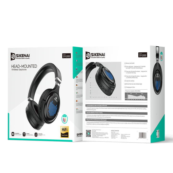 אוזניות אלחוטיות Over-Ear (Head-Mounted Wireless Earphone) מדגם LY-G300 מבית SIKENAI, מציעות עיצוב בולט וחוויית סאונד Hi-Fi מרשימה, עם נוחות מקסימלית לאורך שעות.